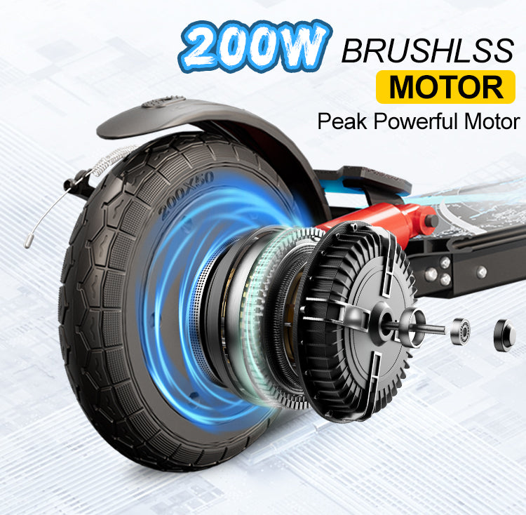 200W Brushless Motor: Provides consistent power for smooth acceleration and efficient energy use. Designed for low maintenance and quiet operation.
