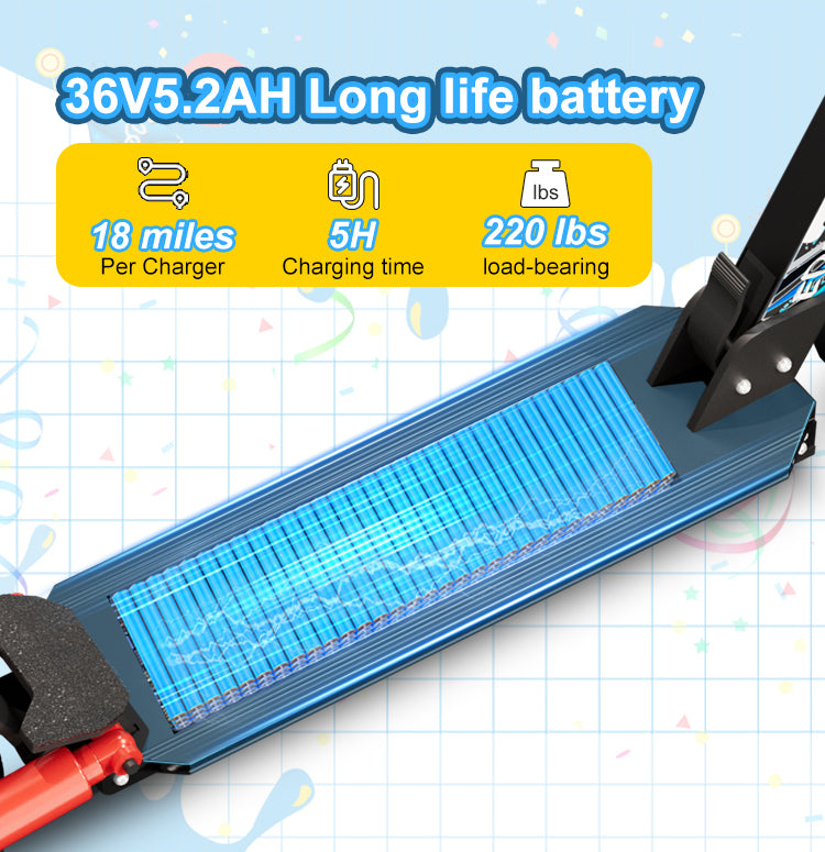 36V 5.2Ah Lithium Battery: Offers a reliable range of up to 20 km (12.4 miles) per charge. The 5-hour quick charge time ensures convenient daily use.