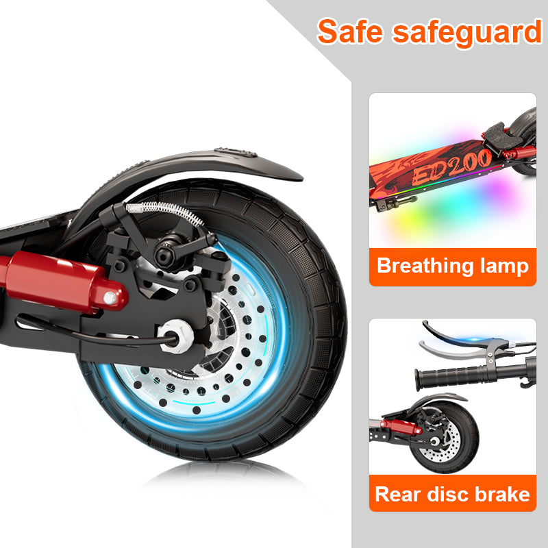 The ED200 Electric Scooter is designed for safe, smooth, and comfortable rides — ideal for both commuting and recreation. Combining a lightweight aluminum frame, dual shock absorbers, and solid maintenance-free tires, this scooter provides a balanced performance for short urban travel. Its non-zero start system and pedal-assisted acceleration make every ride safer and easier to control.