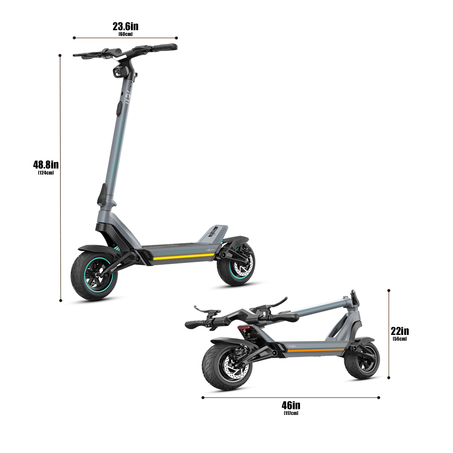 800W Brushless DC Motor: High-performance motor provides peak speeds up to 31 MPH (50 KM/H) and powerful torque for tackling slopes up to 30% incline.