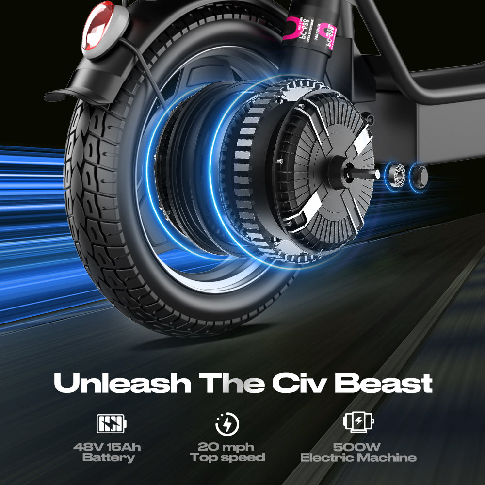500W Brushless Motor: Delivers strong torque and stable acceleration with a top speed of 32 km/h (20 mph), making it ideal for both city commutes and leisure rides.