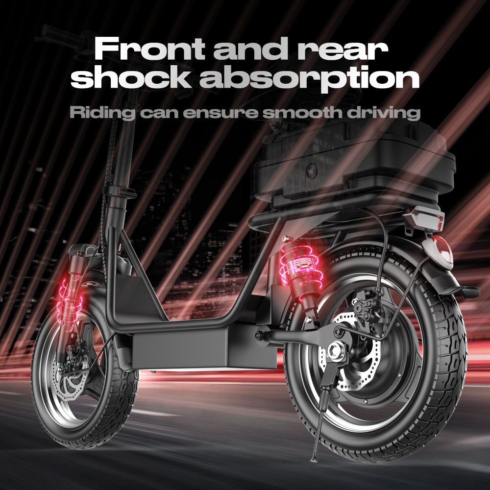 Dual Shock Absorption: Equipped with front and rear suspension to minimize road vibrations and maximize comfort, even on uneven surfaces.
