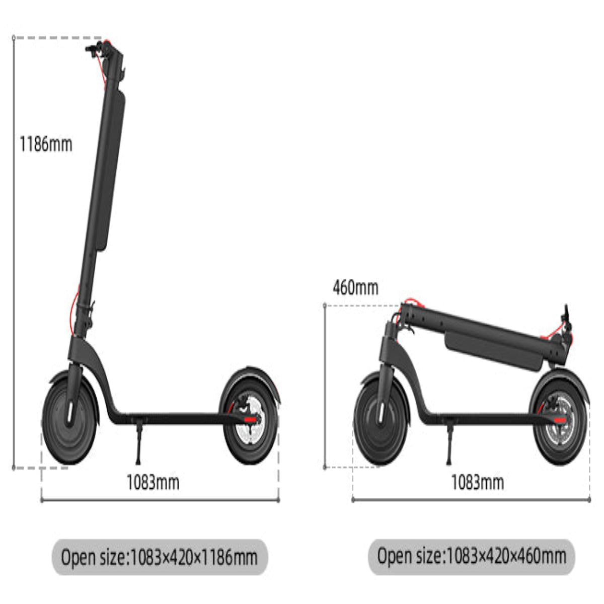 The X8 Electric Scooter delivers a smooth, efficient, and durable riding experience with its advanced engineering and premium construction. Designed for modern commuters, it features a 350W brushless motor, a 36V 10Ah removable battery, and a 10-inch air-filled tire system for optimal comfort and performance.