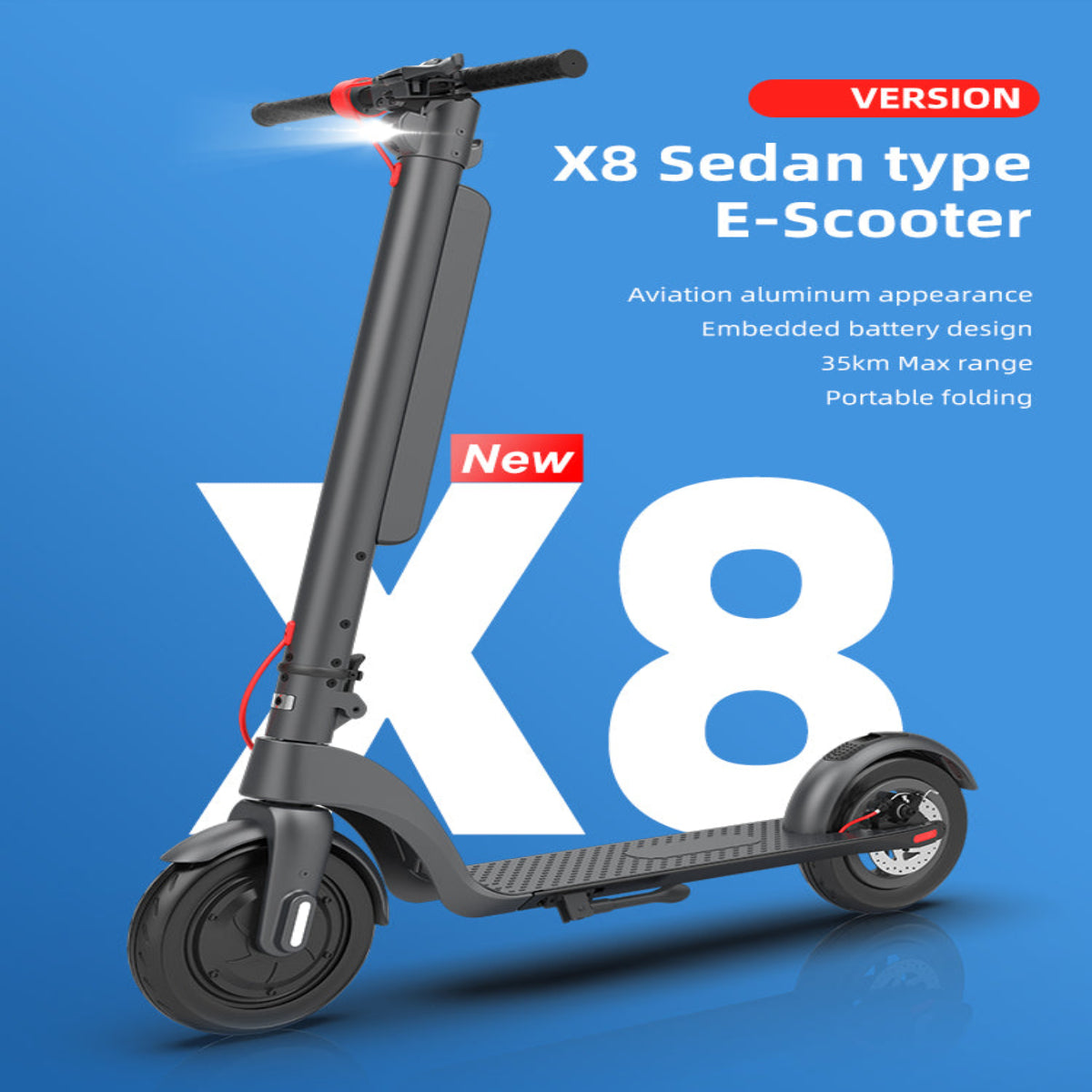 X8 Sedan Type Electric Scooter – 350W Motor | 36V 10Ah Battery | 10-Inch Tires | Portable Folding Design