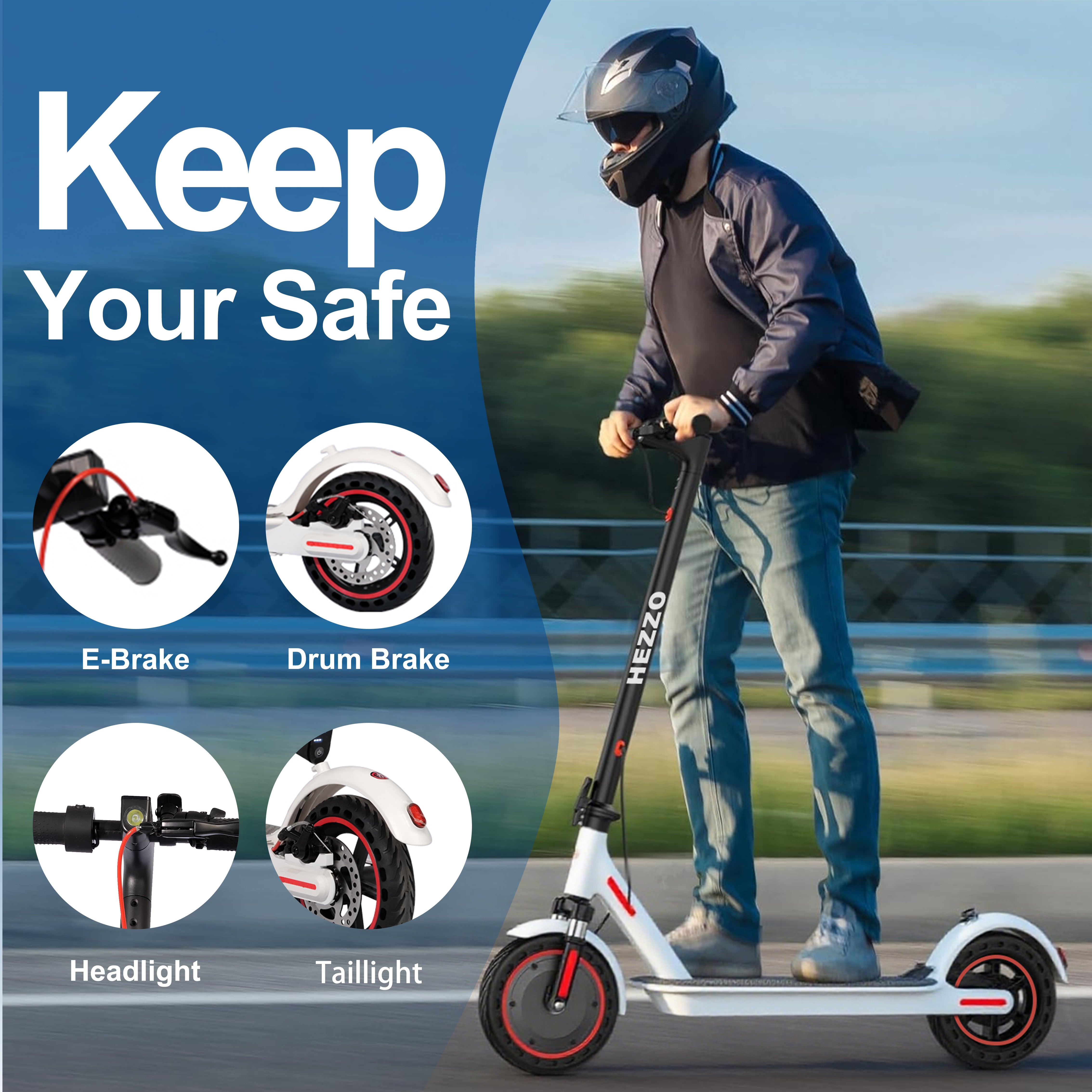 The HEZZO Commuter Electric Scooter is your ideal solution for efficient and safe city travel. Built with a robust Aluminum Alloy Frame and powered by a long-lasting 36V Lithium Battery, the HEZZO offers an impressive 25 Miles Long Range and a top speed of 15.5 MPH, perfectly balancing performance with urban compliance. Its Portable Folding Design and comprehensive safety features make it the ultimate choice for the modern rider.