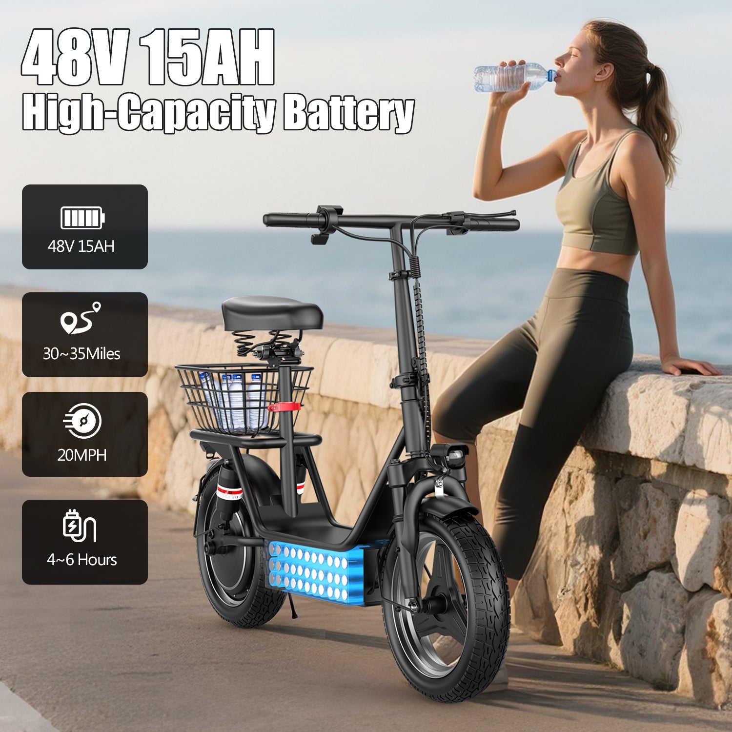 48V 15Ah Long-Range Battery: Provides an extended 30–35 miles (50KM) range per charge for daily commutes and weekend adventures.