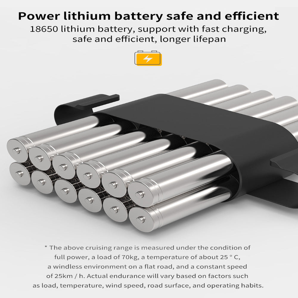 Fitted with premium 18650 lithium cells, the scooter delivers a travel range of up to 25 km (15 miles) per charge, ensuring reliability and longer battery life.