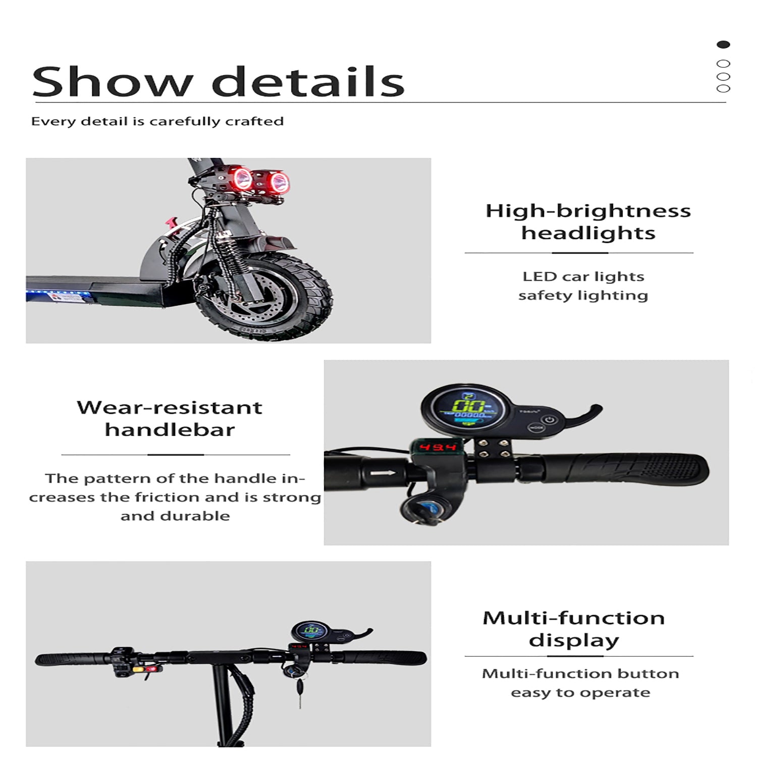 Enhanced Visibility & Safety Lighting: Safety is guaranteed with high-quality, High-Brightness Headlights (LED car lights) and bright rear taillights. Paired with a Wear-Resistant Handlebar pattern designed to increase grip and durability, ensuring maximum control during rides.