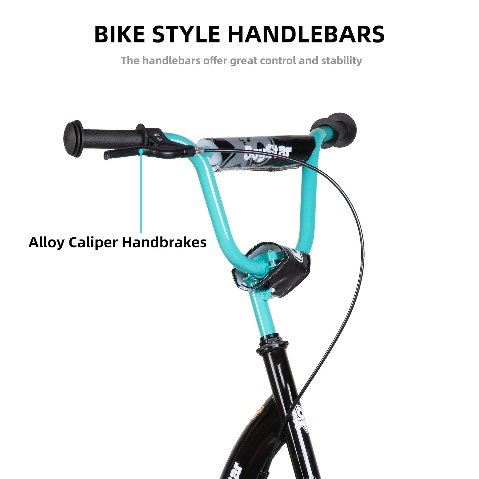 Bike-Style Handlebars with Alloy Caliper Brakes: Offers precise control and responsive braking for enhanced safety.